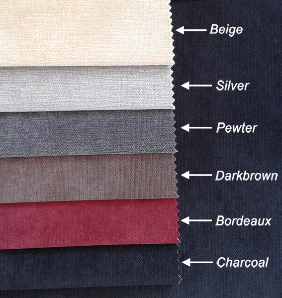 Revêtement : Tissu d’ameublement, traité anti-taches, disponible en 18 coloris Origine Espagne